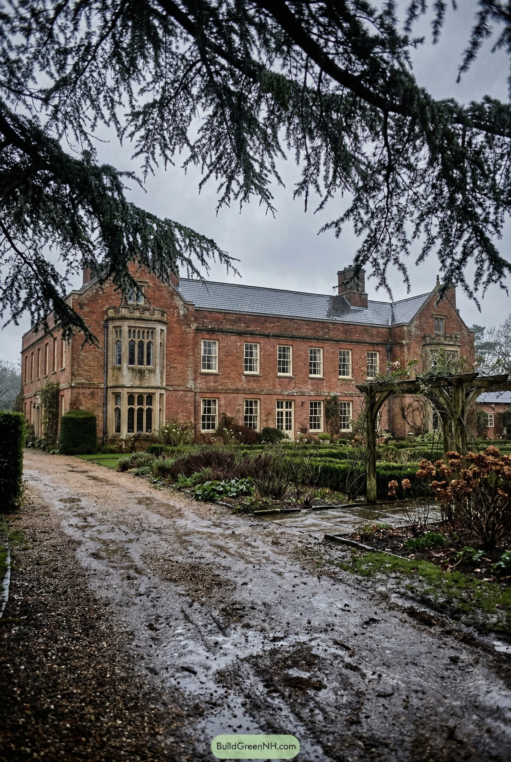 This manor leans into late Tudor and Jacobean cues, with pointed front gables, tall chimney stacks, and that gorgeous mix of red brick and pale stone. It feels like it grew over generations, which is part of the magic, like the house kept getting one more good idea.