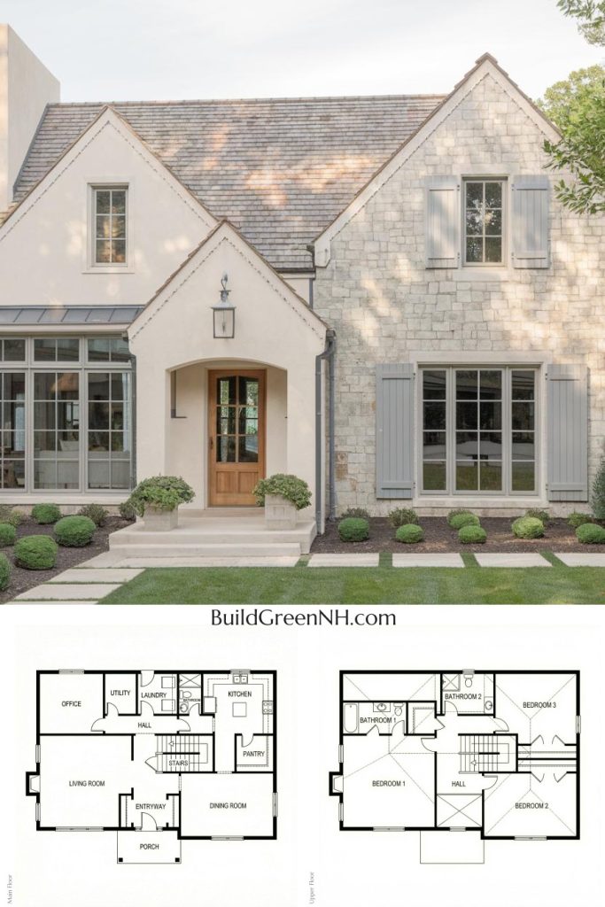 2-story House Floor Plans: Snowy Farmhouse With Warm Modern Touches