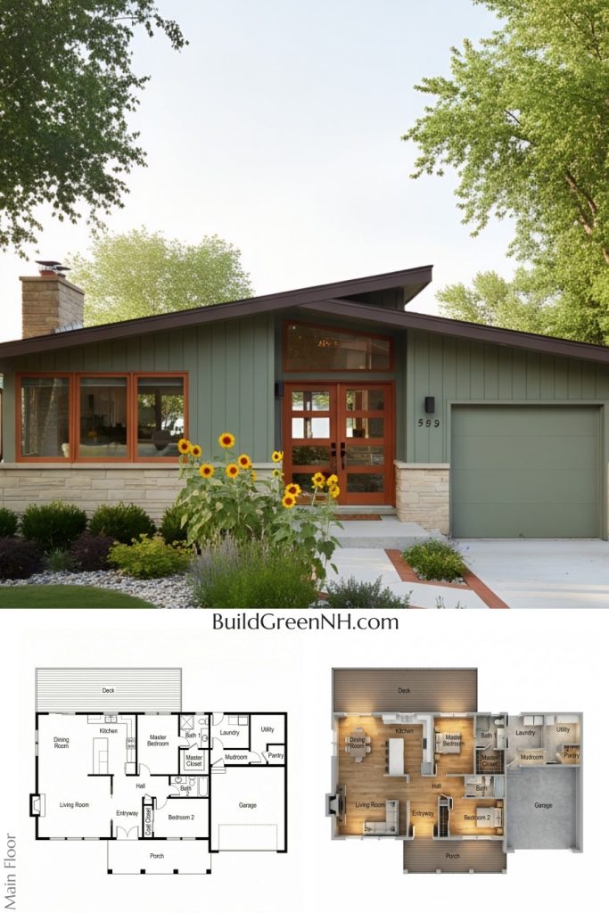 Mid-century Modern House Floor Plan: Sunflowers, Stones, and Sleek Slopes