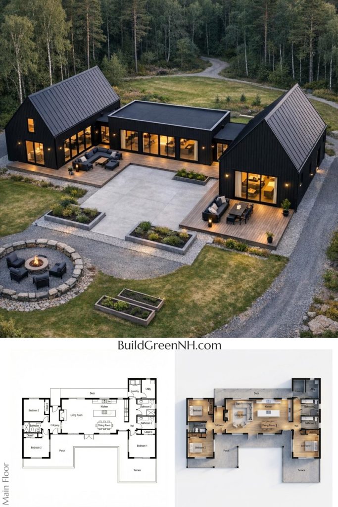 Scandinavian House Floor Plans: Courtyard Char Black Nordic Homestead