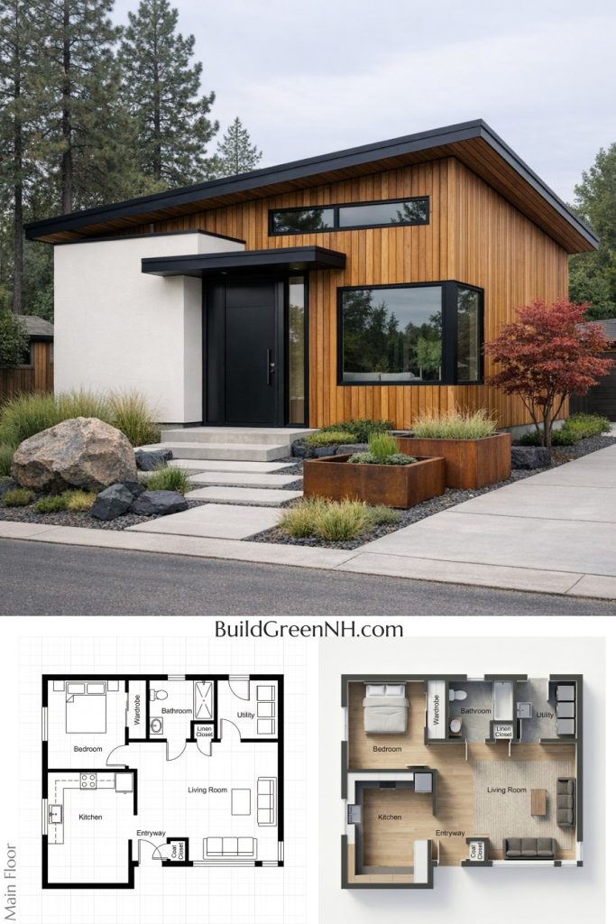 Small Modern House Floor Plans: Warm Cedar Retreat With Bold Entry