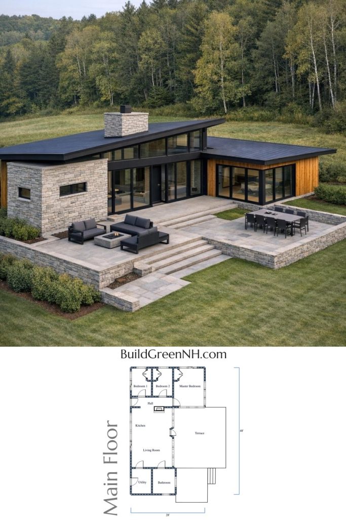 Modern Ranch House Floor Plans: Stone and Timber Fusion