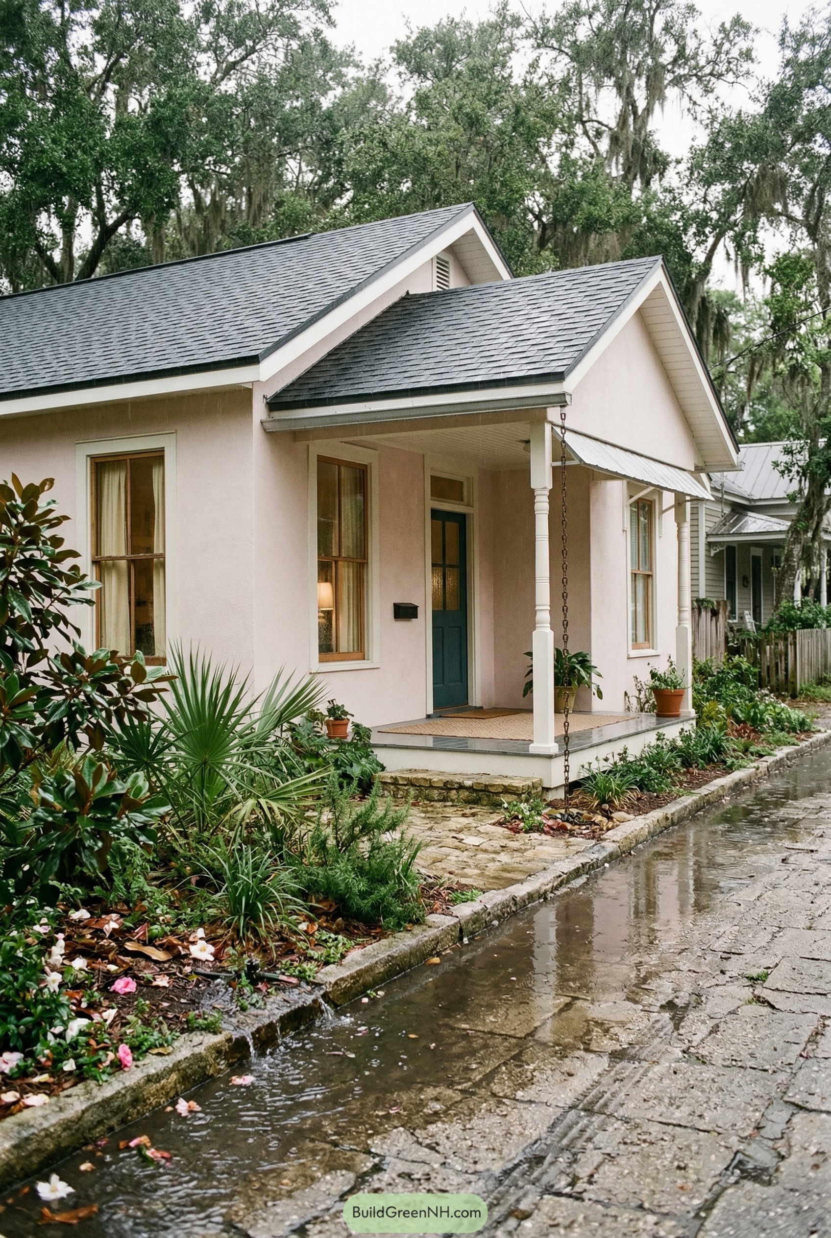 We took cues from Gulf Coast cottages and garden town houses, so the metal roof, tall shutters, and vine covered trellises all feel easy and lived in. The compact footprint matters here, because every move has to count, and the generous porch says you can sit a while even if the house itself is pretty tiny.