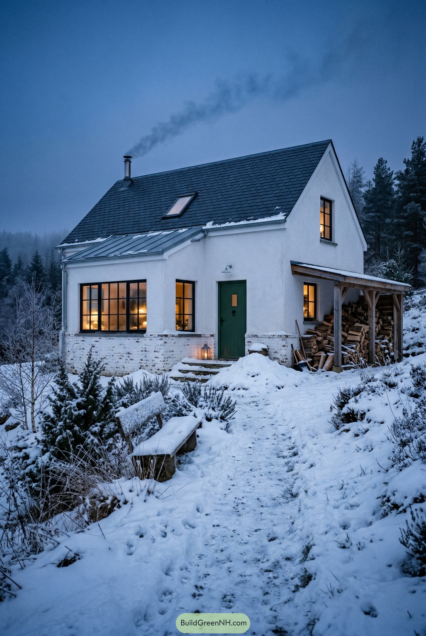 We tucked a generous bank of windows along the main living side so the inside feels close to the landscape, even when you would rather not step into the snow. The attached wood store and covered entry are there for pure practicality, though they accidentally make the whole place feel even more like a mountain hideout you never really want to leave.
